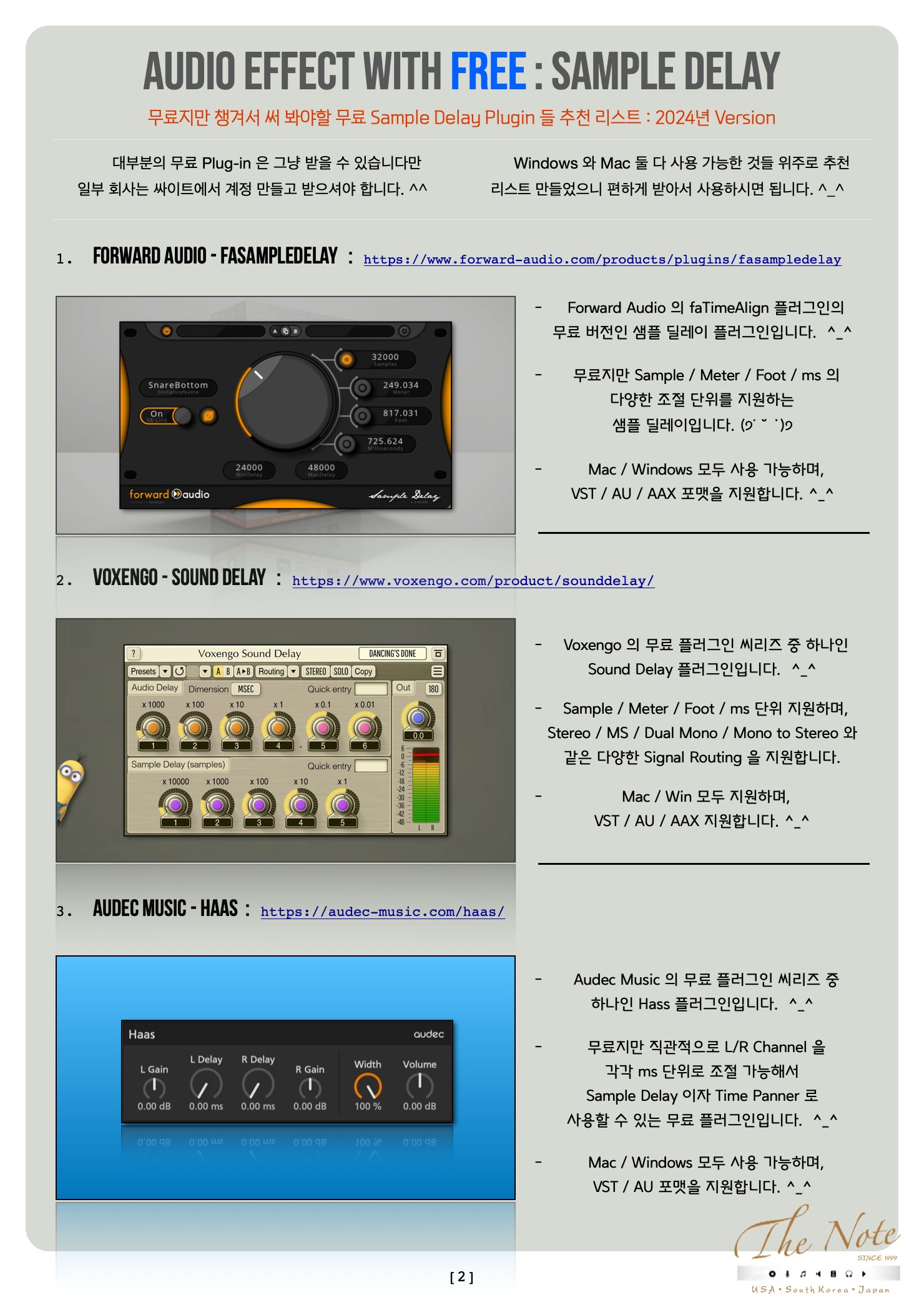 추천 무료 Sample Delay 는 대부분 Mac / PC 사용 가능하며 VST / AU / AAX 방식을 지원합니다. ^^