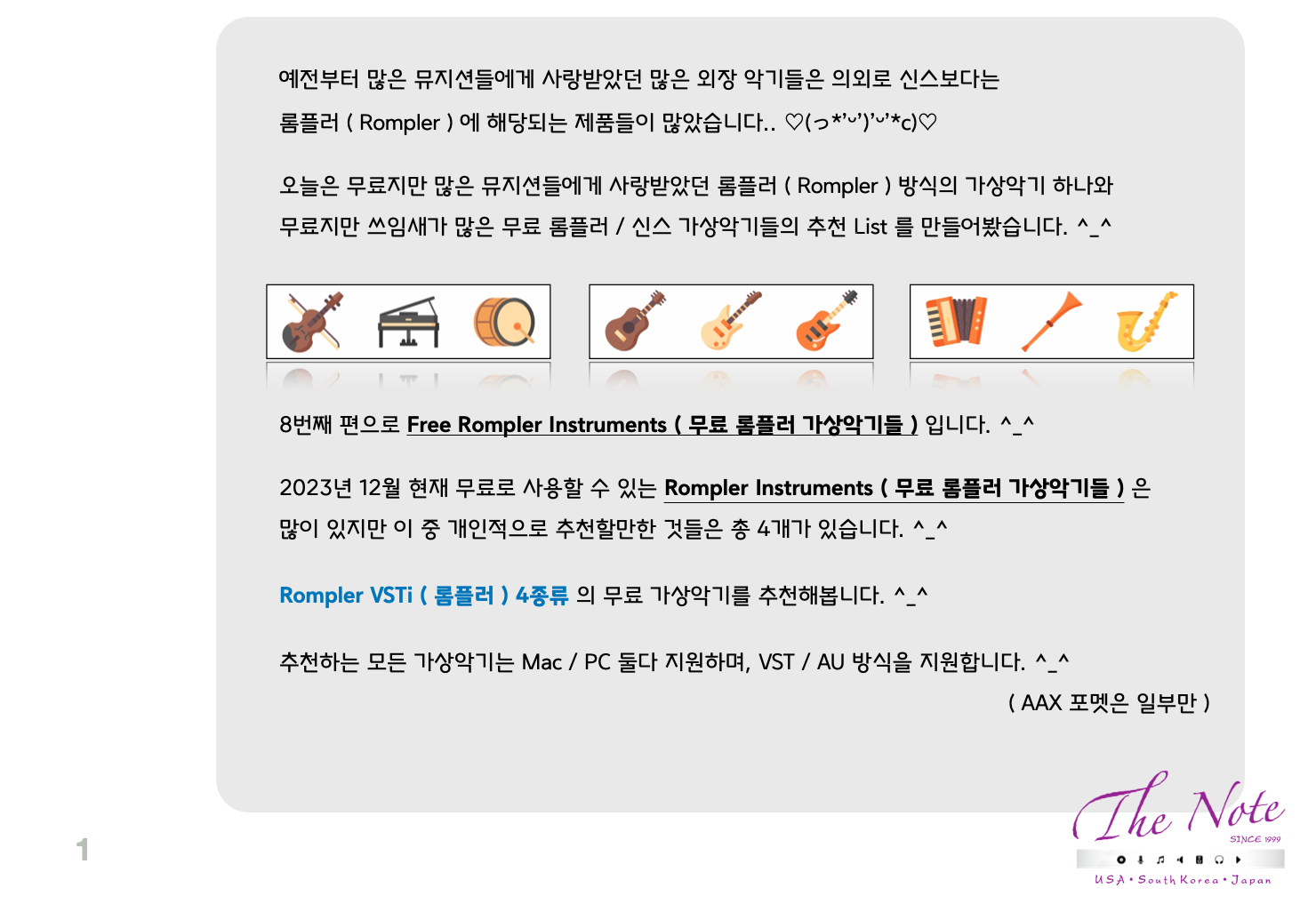 8번째 편은 : Free Rompler Instruments ( 무료 롬플러 가상악기 ) : 편입니다. ٩(´▽`)۶