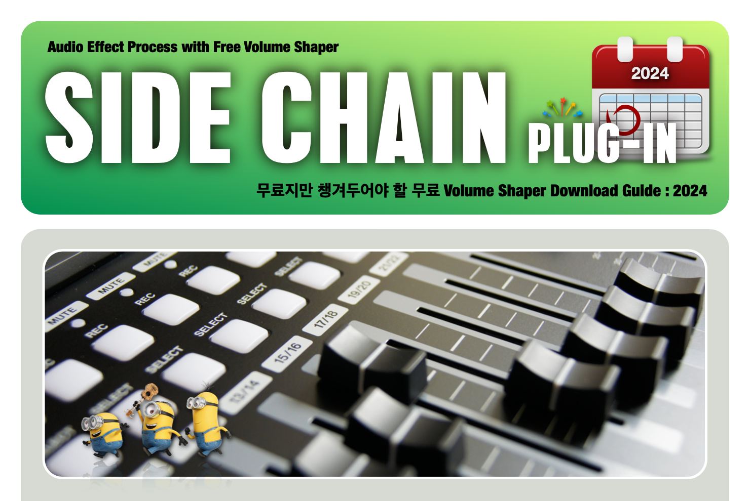 Audio Effect Process with Free Volume Shaper Side Chain Plug-in 무료지만 챙겨두어야 할 무료 Volume Shaper Download Guide : 2024 Audio Effect with FREE : Volume Shaper 오늘은 무료지만 챙겨서 써 봐야할 무료 Volume Shaper Plugin 들 추천 리스트를 정리해서 올려봅니다. ^_^ 기존에 유료 플러그인을 사용하는 분들도, 이제 새로 시작하는 분들도 꼭 한번 사용해보면 좋을 것들로 골랐습니다. ^^ 기본적인 믹싱 프로세싱 외에 톤 디자인 / 그루브 디자인을 위해서 프로덕션 과정에서 하게 되는 것이 Side Chain 작업입니다. ๑( ╹ワ╹ )๑ Side Chain Processing ( 사이드 체인 프로세싱 ) 을 정확히 이해하고 작업에 활용하면 좋겠지만, 이 부분을 어려워하시는 분들이 많이 있습니다. 그냥 손쉽게 Wobble ( 와플 ) 사운드만 구현하고 싶은 분들을 위해서 쉽게 구현할 수 있도록 Volume Shaper 플러그인들이 있습니다. ^-^ 하지만 그렇다고 용도에 따라서 유료 플러그인을 여러개를 구매 하기에는 우리의 주머니가 가벼워질 수 있으니 이럴때 써 보시라고 무료지만 유료만큼이나 유용해서 챙겨서 써 봐야할 무료 Volume Shaper Plugin 추천 리스트 를 올려봅니다. ^_^ 무료지만 다양한 Preset 들이 포함되어 있는 것들도 많기 때문에 각각의 Volume Shaper 플러그인에서 많은 아이디어 얻을 수 있습니다. \( ˆoˆ )/ The Note 무료지만 챙겨서 써 봐야할 무료 Volume Shaper Plugin 들 추천 리스트 대부분의 무료 Plug-in 은 그냥 받을 수 있습니다만 일부 회사는 싸이트에서 계정 만들고 받으셔야 합니다. ^^ Windows 와 Mac 둘 다 사용 가능한 것들 위주로 추천 리스트 만들었으니 편하게 받아서 사용하시면 됩니다. ^_^ Caelum Audio - Flux Mini 2 : https://www.caelumaudio.com/CaelumAudio/?Page=FluxMini2 Caelum Audio 에서 출시한 Flux Mini 는 대표적인 Volume Shaper / Side Chain Effect 무료 플러그인입니다. ^_^ 일반적인 Side Chain Compression Effecting 또는 Wobble ( 와플 ) 사운드를 손쉽게 구현할 수 있고, 원하는 디자인도 가능합니다. ^_^ Mac / Windows 모두 사용 가능하며, VST / AU / AAX 포맷을 지원합니다. ^_^ Zeeks - STFU : https://zeeks.app/ Zeek 의 STFU 도 Flux Mini 와 유사한 무료 Volume Shaper 입니다. ^_^ 심플하지만 LFO / MIDI Note / Side Chain Audio / Audio CV 로 조절 및 Control Signal 출력 가능합니다. ^_^ Mac / Windows 모두 사용 가능하며, VST / AU 포맷을 지원합니다. ^_^ RDG Audio - Side Chainer 2 : https://rdgaudio.com/sidechainer2/ RDG Audio 의 Side Chainer 2 도 Flux Mini 와 유사한 무료 Volume Shaper 입니다. ^_^ 마찬가지로 직관적이지만 간단히 Side Chain Compression / Wobble ( 와플 ) 사운드를 구현 가능합니다. Mac / Windows 모두 사용 가능하며, VST / AU 포맷을 지원합니다. ^_^