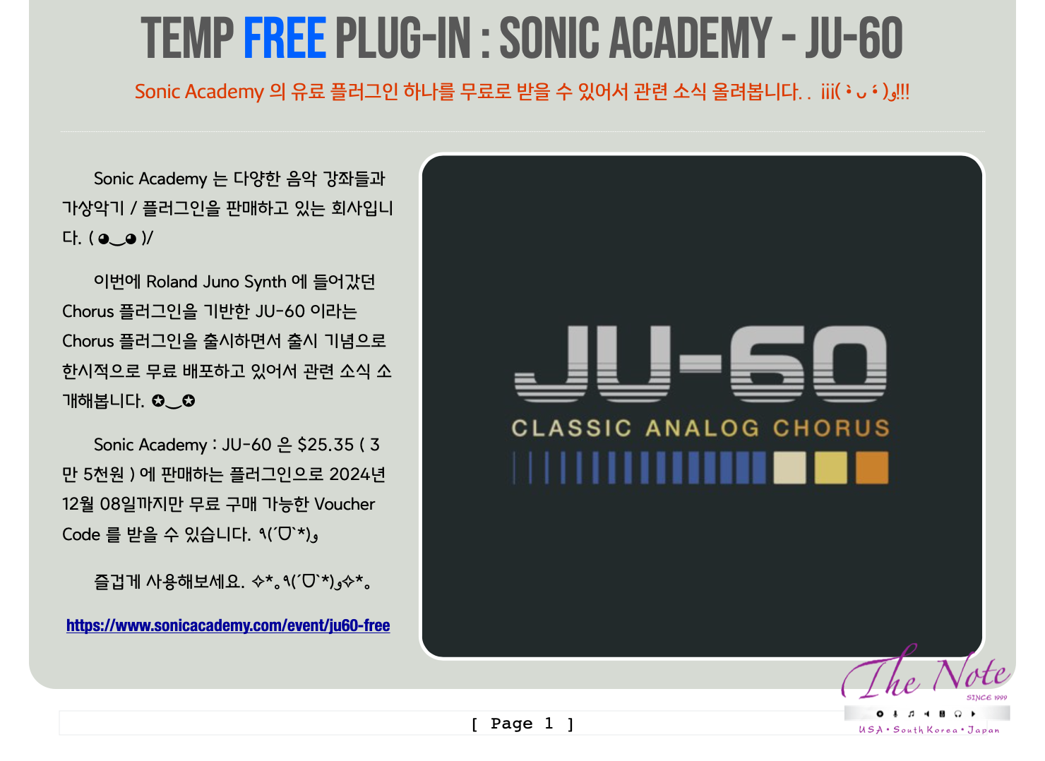 한시적 무료 플러그인 : Sonic Academy - JU 60 ( 2024년 12월 08일 마감 )
