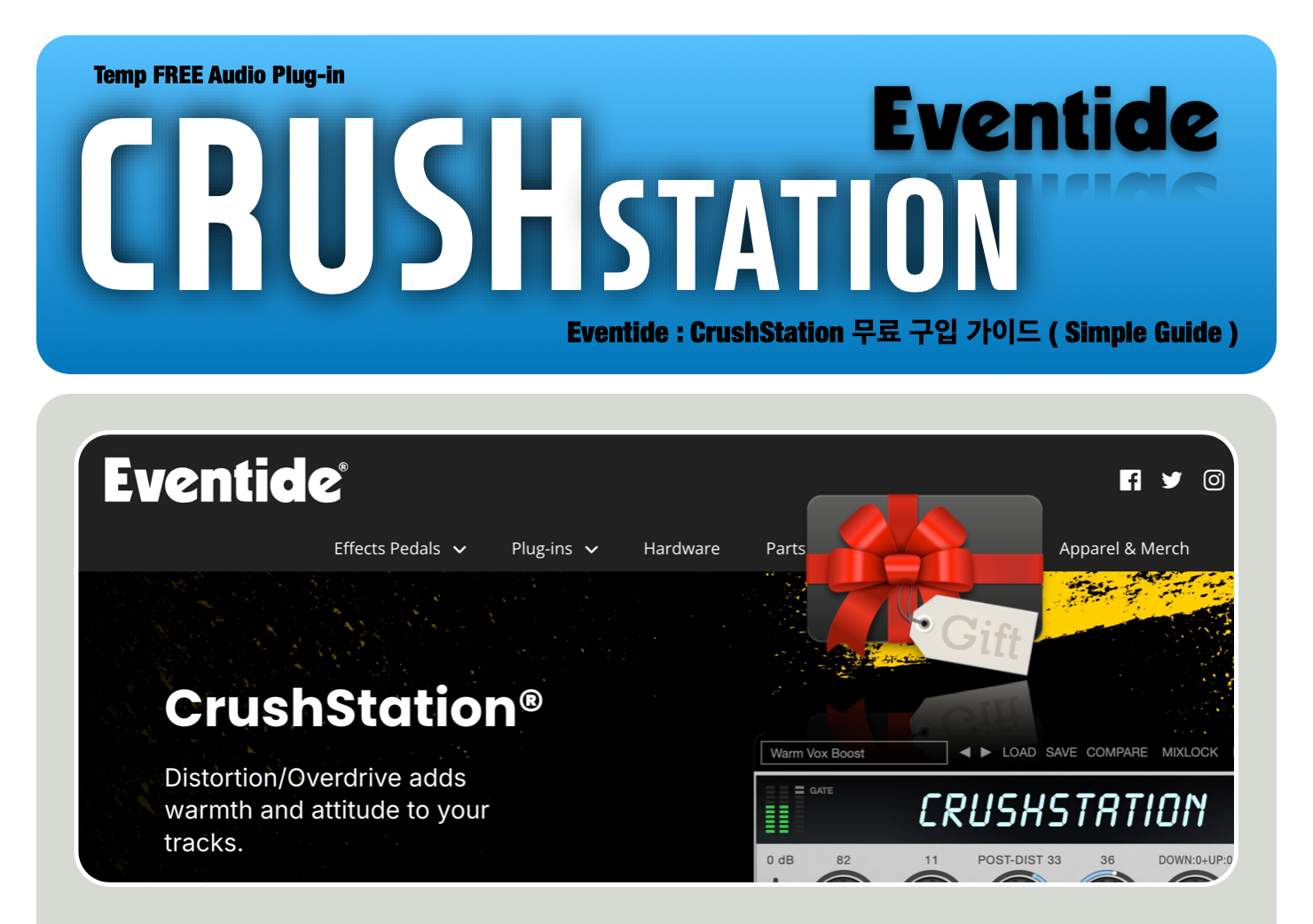 이번에 Eventide - CrushStation 라는 디스토션 플러그인을 이벤트로 한시적으로 무료로 받을 수 있습니다. ✿(′ᵕ′*)