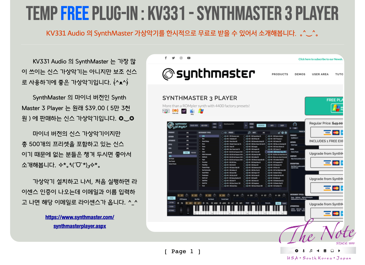 관련 홈페이지 : https://www.synthmaster.com/synthmasterplayer.aspx